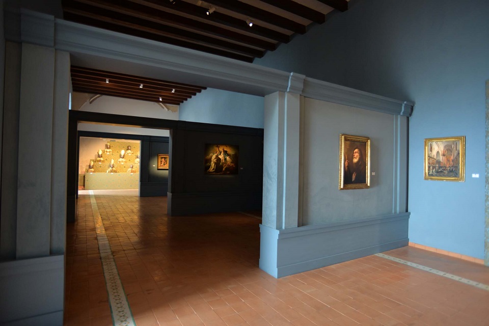Nella prima parte sono in esposizione dipinti, icone e reperti lignei. Tra i quadri si segnalano il “San Francesco in estasi”, attribuito a Guido Reni, ” Il perdono di Giuseppe”, della scuola di Paolo Veronese, ed una serie di quadri, con diversi soggetti, i cui autori sono tra i maggiori esponenti del “Barocco Napoletano”, quali Luca Giordano, Mattia Preti, Pacecco De Rosa ed Andrea Vaccaro; particolarmente interessante è la “Salomè”,copia da Caravaggio, attribuita a Battistello Caracciolo. Ricca di fascino è, nel suo insieme, la collezione di icone orientali, ma anche di splendide tavole medievali, come la Madonna in maestà (sec. XIV) di scuola senese, l’ex-voto di Margherita di Savoia (sec.XV), ma soprattutto la Madonna del Latte (sec. XII), meglio nota come “Madonna si San Guglielmo”, prima icona venerata la Santuario. Completano la prima sezione due autentici capolavori di arte lignea: il monumentale Cristo deposto (cm 200X140) di XIII sec. e la spettacolare Cattedra di XII-XIII sec.