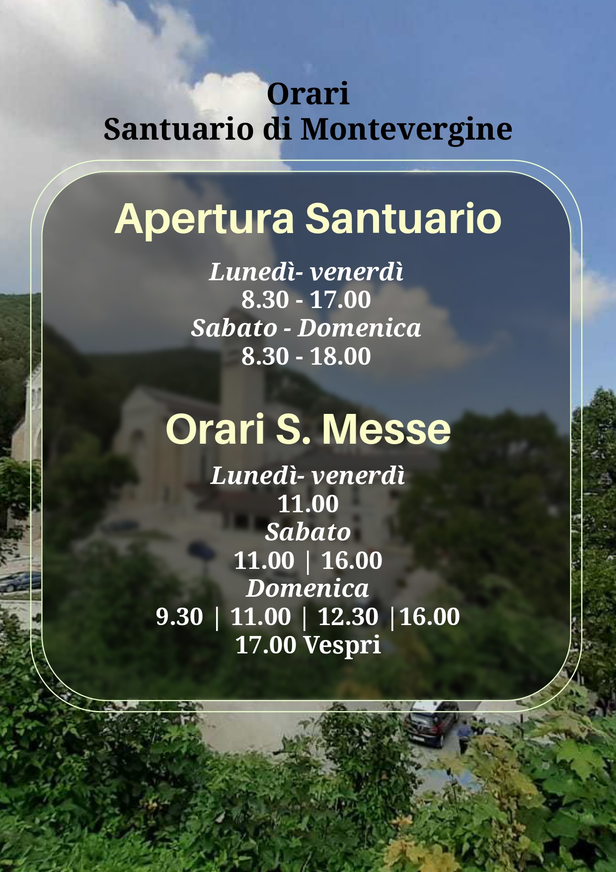 Nuovi orari del Santuario e delle celebrazioni liturgiche in vigore dall’8 aprile 2026 fino a nuova comunicazione. Si ricorda che il Santuario è accessibile solo ed esclusivamente in funicolare o percorrendo il sentiero.